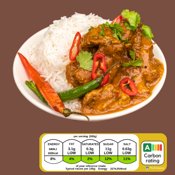 A hot and hearty dish, great for any spice connoisseur or someone looking for an authentic spice experience. This is our hot version of the railway mutton curry and plays more on the Indo/Pakistani Punjabi karahi style of cooking. The base is fiery and warm with green chilies and cracked black pepper fried in mustard oil. Karahi style cooking is still widely popular in Lahore and in Punjab on both sides of the border. Instead of meat, our mutton-like chunks are a magical combination of shiitake mushroom, soy and wheat protein in a scrummy curry sauce.